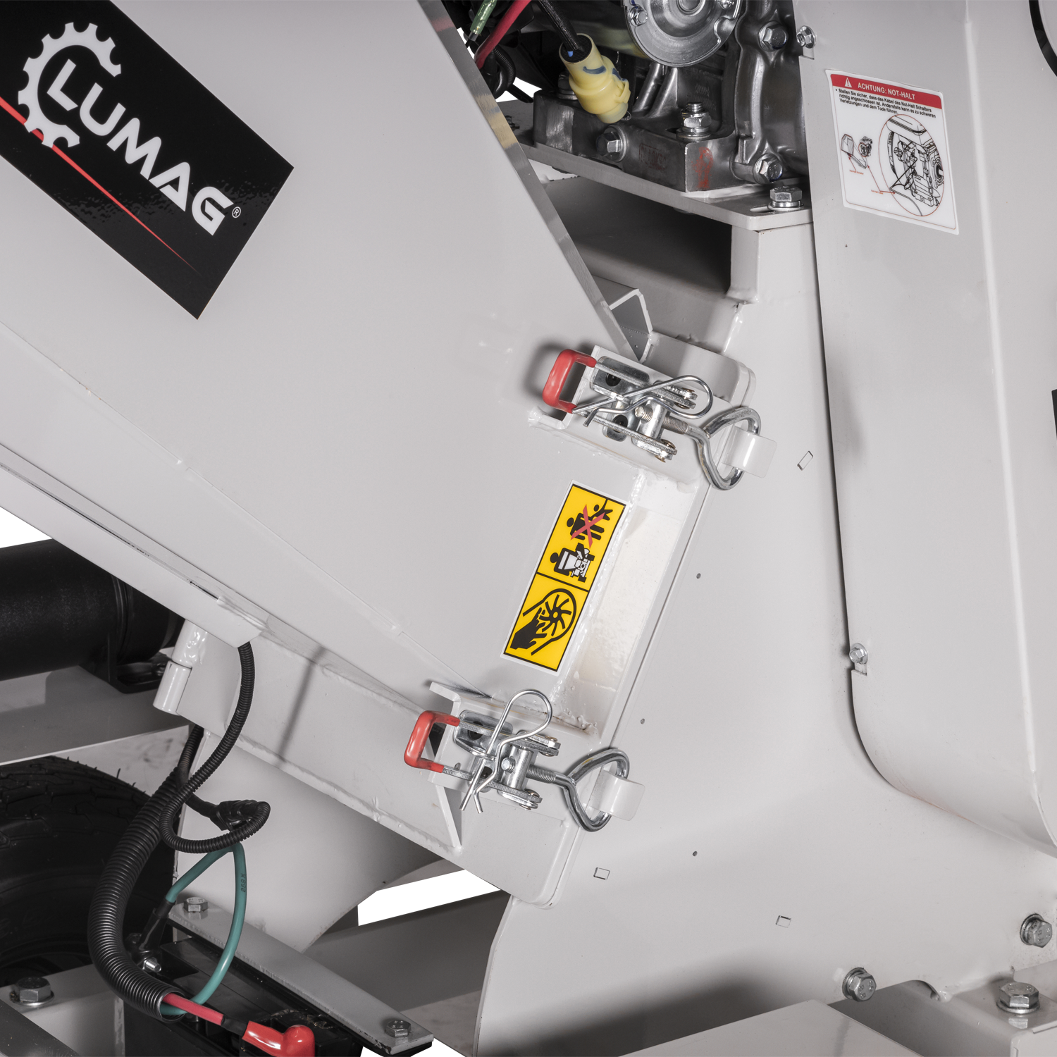 Der Lumag Benzin-Trommelhäcksler RAMBO-V2 ist unser bislang leistungsstärkster Helfer für all Ihre Häckselarbeiten. Mühelos bewältigt der Häcksler auch sehr dickes Astwerk mit einem Durchmesser von bis zu 150 mm. Der große Einfülltrichter sorgt für eine komfortable Bedienung und das integrierte Fahrwerk mit Pendelachse und Stollen-Luftbereifung ermöglicht schnelles und einfaches Umsetzen, auch in unwegsamem Gelände. Durch die verstärkte, professionelle Duplex-Messertrommel steigt die Einzugskraft erheblich und der RAMBO-V2 verarbeitet nun noch widerspenstigeres Material. Der verstellbare Auswurfschacht sowie die Auswurfklappe bieten zusätzliche Flexibilität und der Einwurftrichter kann zur Reinigung der Messertrommel zur Seite geklappt werden. Mit dem RAMBO-V2 haben Sie einen zuverlässigen und leistungsstarken Partner für alle Ihre Häckselarbeiten im privaten und gewerblichen Bereich.