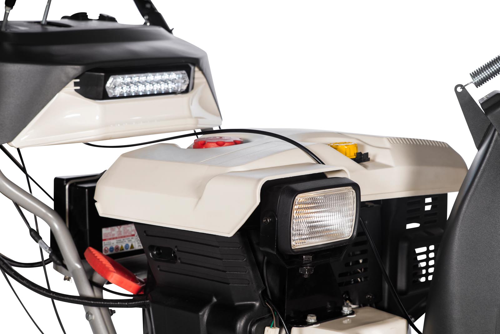Durch die Höhenverstellung per Knopf am Führungsbügel, die robuste Einzugsschnecke mit einer Wurfweite von 15 Metern und dem elektrisch drehbaren Auswurf (180° stufenlos), ermöglicht Ihnen die Fräse ein komfortables Arbeiten. Zusätzlich schützt die integrierte Griffheizung ihre Hände vor eisigen Temperaturen, was das Arbeiten im Winter draussen erleichtert. Die Hydrostatische Schneefräse SFK80H von LUMAG ist zusätzlich mit einem hydrostatischen Antriebssystem und LED Scheinwerfern (Lichtleiste und Griffheizung zuschaltbar) ausgestattet.