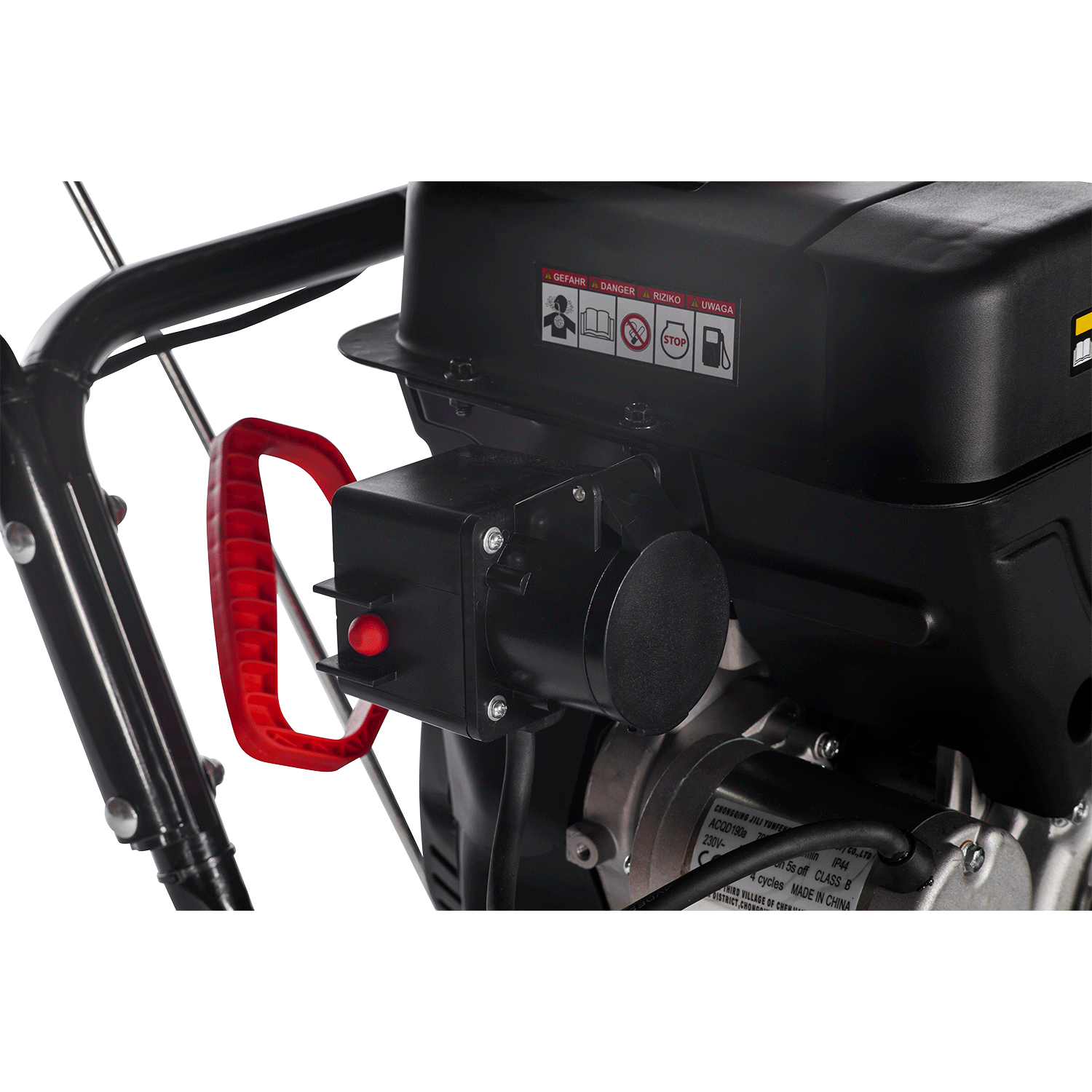 Die Profi-Schneefräse SFK90PRO von Lumag ist ein absolutes Kraftpaket für den professionellen Einsatz mit 90cm Räumbreite. Die Einhandbedienung und die Lenkunterstützung durch die Differentialsperre machen das Schneeräumen zum Kinderspiel. Der Elektrostart und die beheizten Handgriffe sorgen für eine komfortable Bedienung auch bei kalten Temperaturen. Das Raupenlaufwerk sorgt für optimale Traktion und die robuste Einzugsschnecke wirft den Schnee bis zu 15 Meter weit. Der Auswurf ist elektrisch höhen- und seitenverstellbar und die Höhenverstellung erfolgt über Gleitkufen. Auch bei Dunkelheit sorgt der LED-Arbeitsscheinwerfer für gute Sichtverhältnisse. Die Profi-Schneefräse SFK90PRO ist die ideale Wahl für den professionellen Einsatz um Haus und Hof, sowie zum Räumen von Parkplätzen und Stellflächen.